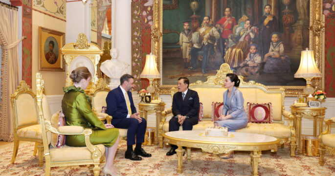 พระบาทสมเด็จพระเจ้าอยู่หัว และสมเด็จพระนางเจ้า ฯ พระบรมราชินี พระราชทานพระบรมราชวโรกาสให้คณะบุคคลเฝ้าฯ