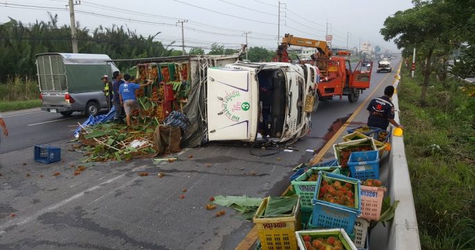 วินาทีเหินข้ามฝั่ง! คนขับรถเทรลเลอร์บรรทุกน้ำมันปาล์มวูบเหินข้ามฝั่งบนถนนพระราม 2 ชนระนาว ส่งผลให้มีผู้เสียชีวิต 3 คน บาดเจ็บ 6 คน