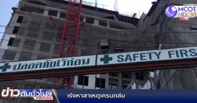 วิศวกรรมสถานแห่งประเทศไทยฯ เข้าตรวจสอบที่เกิดเหตุเครนถล่มทับคนงาน ระบุเป็นการพังถล่มลงมาของทาวเวอร์เครน คาดอาจพังถล่มเนื่องจากรับน้ำหนักไม่ไหว ขณะเพิ่มความสูงด้วยการต่อเครนท่อนสุดท้ายและปิดฝาบนตัวเครนแรงเกินไป