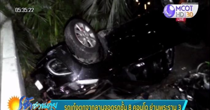 รถเก๋งตกจากลานจอดรถชั้น 8 ในคอนโดย่านพระราม 3 คนขับหมดสติ