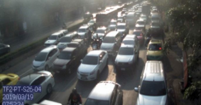 สวพ.FM 91 รายงานจราจรเช้าพฤหัสบดี ถ.สุขุมวิท ขาเข้า ผ่านแยกพระโขนง – เอกมัย – ทองหล่อ รถมาก