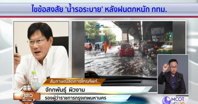 นายจักกพันธุ์ ผิวงาม รองผู้ว่าฯ กรุงเทพมหานคร ให้สัมภาษณ์สดทางโทรศัพท์ ไขข้อสงสัย “น้ำรอระบาย” หลังฝนตกหนักกรุงเทพฯ เกิดน้ำท่วมขัง 26 จุด