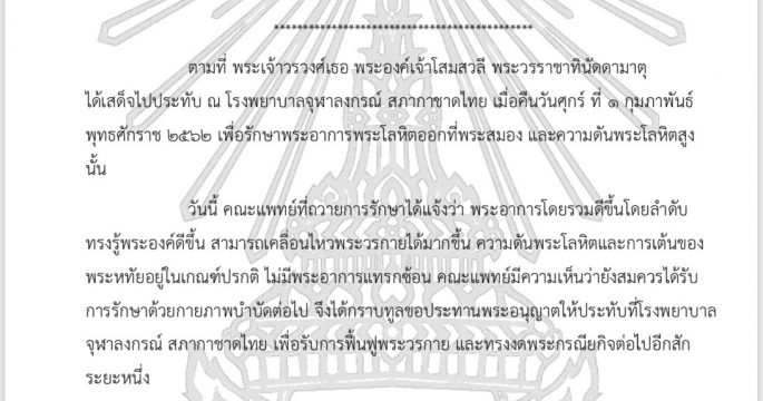 ริยาด 19 พ.ค.- สำนักข่าวเอสพีเอ (SPA) ของทางการซาอุดีอาระเบียรายงานว่า สมเด็จพระราชาธิบดีซัลมาน บิน อับดุลอะซีซ อาล ซะอูด แห่งซาอุดีอาระเบียจะทรงรับการถวายการตรวจพระวรกายในวันนี้ เนื่องจากทรงมีพระอาการไข้สูงและปวดพระข้อ เอสพีเอรายงานว่า การถวายการตรวจพระวรกายจะมีขึ้นที่คลินิกหลวงที่พระราชวังอัล ซาลามในนครเจดดาห์ ก่อนหน้านี้สถานีโทรทัศน์ของทางการซาอุดีอาระเบียรายงานว่า สมเด็จพระราชาธิบดีซัลมาน พระชนมพรรษา 88 พรรษาเสด็จพระราชดำเนินไปประทับโรงพยาบาลครั้งหลังสุดเมื่อเดือนเมษายนเพื่อทรงรับการถวายการตรวจพระวรกายตามปกติ และทรงรับการถวายการผ่าตัดนิ่วในถุงน้ำดีในปี 2563 สมเด็จพระราชาธิบดีซัลมานเสด็จขึ้นครองราชย์ในปี 2558 หลังจากดำรงตำแหน่งมกุฎราชกุมารและรองนายกรัฐมนตรีเป็นเวลา 2 ปีครึ่ง.-814.-สำนักข่าวไทย