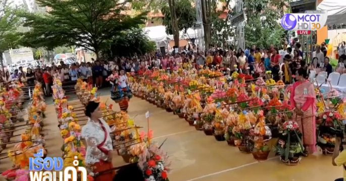ที่วัดโพธิ์ลอย ต.หนองกระปุ อ.บ้านลาด จ.เพชรบุรี ชาวบ้านจัดทำหาบสลาก ร่วมทำบุญถวายสลากภัตแด่พระสงฆ์ ซึ่งนอกจากสลากภัตที่เป็นข้าวสารอาหารแห้ง ฟัก แฟง แตงกวา