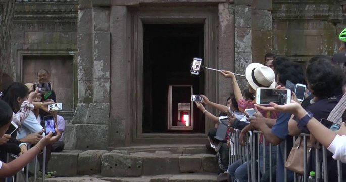 บุรีรัมย์ 4 เม.ย.- นักท่องเที่ยวยังคงประทับใจเฝ้าชมปรากฏการณ์ดวงอาทิตย์ขึ้นตรง 15 ช่องประตูประสาทพนมรุ้ง แม้วันที่ 2 เห็นไม่เต็มดวง ไม่เหมือนวันแรก แต่หลายคนยังตั้งใจรอชมถึงวันสุดท้าย เชื่อเป็นสิริมงคล บรรยากาศการชมปรากฏการณ์มหัศจรรย์ดวงอาทิตย์ขึ้นตรง 15 ช่องประตูปราสาทพนมรุ้ง ที่อุทยานประวัติศาสตร์พนมรุ้ง ต.ตาเป๊ก อ.เฉลิมพระเกียรติ จ.บุรีรัมย์ วันนี้ (4 เม.ย.) เป็นวันที่ 2 ยังคงมีนักท่องเที่ยวไทยและต่างชาติมาปักหลักเฝ้ารอตั้งแต่เช้ามืด เพราะเป็นปรากฏการณ์ทางธรรมชาติที่หาชมได้ยาก เมื่อถึงเวลาพระอาทิตย์ขึ้นประมาณ 06.00 น. ท้องฟ้าค่อนข้างปิดและมีเมฆมาก จึงมองเห็นดวงอาทิตย์ขึ้นตรง 15 ช่องประตูปราสาทพนมรุ้งได้ในช่วงแรก กระทั่งเวลา 06.07 น. เห็นขึ้นไม่เต็มดวง และไม่มีประกายของแสงพระอาทิตย์ก่อนที่จะเคลื่อนผ่านพ้นบานประตูไป ต่างจากวันแรกที่สามารถมองเห็นดวงอาทิตย์ขึ้นตรงได้เต็มดวงและสาดแสงส่องผ่าน 15 ช่องประตูปราสาทอย่างสวยงาม ทำให้นักท่องเที่ยวบางคนรู้สึกผิดหวังที่ไม่ได้เห็นตามที่ตั้งใจ แต่หลายคนก็ยังคงประทับใจ แม้จะมองเห็นไม่เต็มดวง พากันเดินชมความงดงมของปราสาทและรับพลังแสงอาทิตย์ด้านหน้าปราสาทแทน และตั้งใจจะรอชมปรากฏการณ์ดังกล่าวในวันพรุ่งนี้ 5 เม.ย. ซึ่งเป็นวันสุดท้ายอีกวัน นางอุษณีย์ เจนจรัสกุล นักท่องเที่ยว กล่าวว่า ครั้งนี้เป็นครั้งที่สองที่พาครอบครัวเดินทางมาจากกรุงเทพฯ เพื่อจะมาชมปรากฏการณ์ดวงอาทิตย์ขึ้นตรง […]