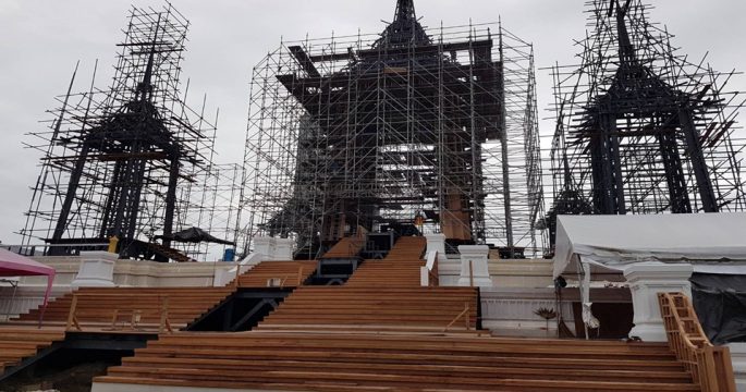 ความคืบหน้าการจัดสร้างพระเมรุมาศ ในงานพระราชพิธีถวายพระเพลิงพระบรมศพ พระบาทสมเด็จพระปรมินทรมหาภูมิพลอดุลยเดช โครงสร้างหลักพระเมรุมาศใกล้เสร็จสมบูรณ์