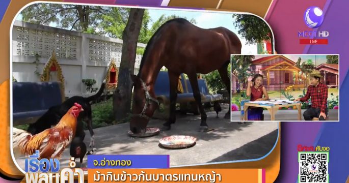 วัดอื่นมีหมาวัด แมววัด แต่ที่จังหวัดอ่างทอง มีม้าวัด ไม่กินหญ้าแบบม้าทั่วไป หันมากินข้าวก้นบาตรพระ เหมือนสัตว์ตัวอื่นๆ ในวัด