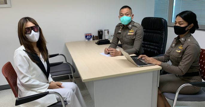 พริ้ตตี้ “หมูหวาน” พร้อมทนาย หอบหลักฐาน ร้องตำรวจเอาผิดผู้ปล่อยภาพข่าวอ้างว่าเป็นโลกใบที่ 1 ของว่าที่เจ้าบ่าวดาราสาว