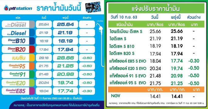 พรุ่งนี้ น้ำมันกลุ่มเบนซิน 50 สต. ยกเว้น E85 ลดลง 30 สต./ลิตร
