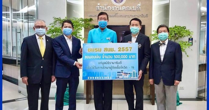 กรุงเทพฯ 13 เม.ย.-ผู้สื่อข่าวรายงานว่า วันนี้ (13 เม.ย.) ที่สำนักงานคณบดี คณะแพทยศาสตร์โรงพยาบาลรามาธิบดี นายพรเพชร วิชิตชลชัย ประธานวุฒิสภา พร้อมด้วยอดีตสมาชิกสภานิติบัญญัติแห่งชาติ (สนช.) ประกอบด้วย นายประเสริฐ บุญสัมพันธ์ ประธานกรรมการชมรม สนช. 2557 นายศักดิ์ชัย ธนบุญชัย กรรมการชมรมฯ และ รศ.นพ.สรณ บุญใบชัยพฤกษ์ ร่วมมอบเงินจาก “กองทุนสวัสดิการชมรม สนช. 2557” จำนวน 500,000 บาท แก่มูลนิธิรามาธิบดีฯ โดยมีศาสตราจารย์ นายแพทย์ปิยะมิตร ศรีธรา ประธานกรรมการบริหารมูลนิธิรามาธิบดี เป็นผู้รับมอบ เพื่อนำไปเป็นทุนในการจัดซื้ออุปกรณ์ เครื่องมือแพทย์ที่จำเป็นในการรักษาผู้ติดเชื้อโควิด – 19.-สำนักข่าวไทย