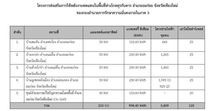 โฆษกอ.รมน. เผย เอกสารโครงการส่งเสริมการใช้พลังงานทดแทนในพื้นที่ห่างไกล อ.อมก๋อยเป็นเอกสารจริง ใช้เผยแพร่ราคากลางของโครงการตามพ.ร.บ.จัดซื้อจัดจ้าง