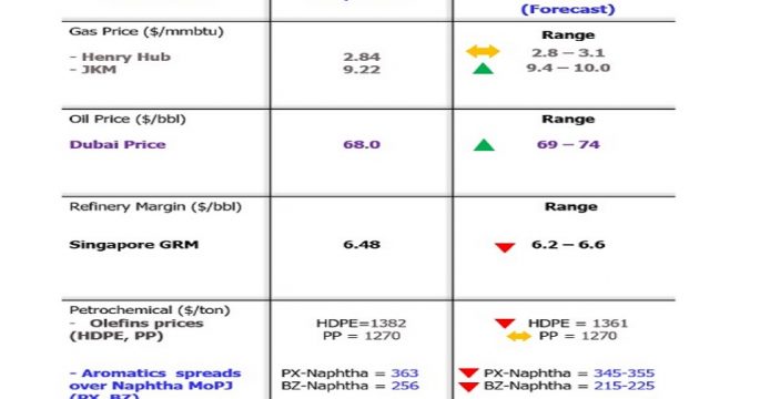 กรุงเทพฯ 12 สค . – บมจ. ปตท .คาดราคาน้ำมันเฉลี่ยปีนี้ขยับขึ้น ส่วนไตรมาส 2/61 กำไรหด เหตุขาดทุนอัตราแลกเปลี่ยนสูง ส่วนความต้องการก๊าซฯคาดปีนี้หดตัวร้อยละ 1.9 กระทบจากภาคเอกชนผลิตไฟฟ้าพลังงานทดแทนใช้เองเพิ่มขึ้น ปตท. แจ้งตลาดหลักทรัพย์แห่งประเทศไทย(ตลท.)ถึงผลประกอบการไตรมาส 2/2561 และคาดการณ์ว่าราคาน้ำมันดิบดูไบในปีนี้ เฉลี่ยอยู่ที่ 69-74 เหรียญสหรัฐ/บาร์เรล จากระดับเฉลี่ย 68 เหรียญสหรัฐ/บาร์เรลในครึ่งปีแรก ขณะที่ความต้องการใช้น้ำมันของโลกในไตรมาส 3/61 คาดว่าจะเพิ่มขึ้น 5 แสนบาร์เรล/วันจากไตรมาสก่อนหน้าไปอยู่ที่ระดับ 99.3 ล้านบาร์เรล/วัน และความต้องการใช้น้ำมันโลกของปี 61 คาดว่าจะเพิ่มขึ้น 1.4 ล้านบาร์เรล/วันไปอยู่ที่ระดับ 99.1 ล้านบาร์เรล/วันตามรายงานของ IEA ณ เดือนก.ค.61 สำหรับภาวะอุปทานล้นตลาดคาดว่าจะลดลงจากแผนความร่วมมือในการลดกำลังการผลิตของกลุ่มประเทศผู้ส่งออกน้ำมัน (โอเปก) และนอกโอเปกอย่างต่อเนื่อง ท่ามกลางปัญหาภูมิรัฐศาสตร์ในตะวันออกกลาง การคว่ำบาตรอิหร่าน แต่ยังคงต้องติดตามการผลิตน้ำมันดิบที่เพิ่มขึ้นจากสหรัฐฯ และปัญหาความขัดแย้งทางการค้า ด้านค่าการกลั่นอ้างอิงสิงคโปร์ในปี 61 คาดว่าจะเฉลี่ยอยู่ที่ 6.2-6.6 เหรียญสหรัฐ/บาร์เรล ปรับลดลงจากปี […]