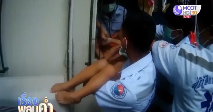 หนูน้อยวัย 3 ขวบ ปีนหน้าต่างเล่นในบ้าน เหยียบพลาดขาหลุดออกนอกหน้าต่าง ส่วนหัวติดเหล็กดัด เแม่มาพบก่อนแจ้งเจ้าหน้าที่ช่วยเหลือได้ทัน
