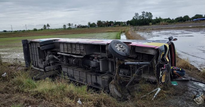 ลำปาง 19 ก.ค.- เกิดเหตุถนนสายลำปาง-เกาะคา รถส่งน้ำดื่มบรรจุขวดล้อหลุดพลิกข้างทาง คนขับเจ็บ ส่วนเพื่อนเสียชีวิต เมื่อเวลา 10.15 น. (19 ก.ค.) ร.ต.อ.ธีรพงษ์ สุมา รองสารวัตร (สอบสวน) สภ.เขลางค์นคร อ.เมือง จ.ลำปาง และเจ้าหน้าที่กู้ภัยสว่างลำปาง เร่งช่วยเหลืออุบัติเหตุรถกระบะบรรทุกน้ำดื่มมาเต็มคันพลิกตะแคงอยู่ริมถนนซุปเปอร์ไฮเวย์ สายลำปาง–เกาะคา ต.ชมพู คนขับได้รับบาดเจ็บถูกนำส่งโรงพยาบาลลำปาง ส่วนผู้ที่นั่งมาด้วยถูกรถทับเสียชีวิตเป็นชาย อายุ 38 ปี เบื้องต้นทราบว่าขณะที่รถกระบะจะนำน้ำดื่มบรรจุขวดไปส่งลูกค้าในตัวเอง และล้อหลังด้านขวาเกิดหลุดกระเด็นไม่ทราบสาเหตุ ทำให้รถเสียการทรงตัวพุ่งตกข้างถนนอย่างแรง.-สำนักข่าวไทย