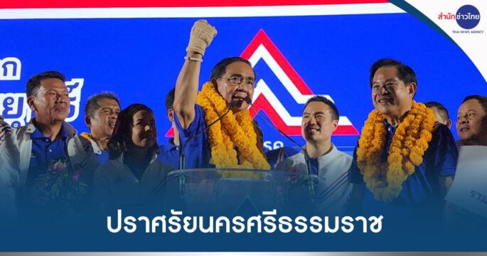 พล.อ.ประยุทธ์ ขึ้นเวทีปราศรัยโค้งสุดท้ายนครศรีธรรมราช มูเตลูศาลหลักเมือง ขอบ้านเมือง-สถาบัน-คนไทย ปลอดภัย รทสช. ได้ ส.ส.ยกจังหวัด บอกรักจังหู้ทั้งวันเป็นทหารโกหกไม่ได้
