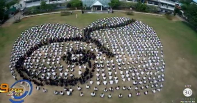 นายอำเภอเวียงแก่น จ.เชียงราย พร้อมพสกนิกรทุกหมู่เหล่า และชาวไทยภูเขา 9 ชนเผ่า รวม 5,989 คน ร่วมถวายอาลัย แปรอักษรเลข ๙