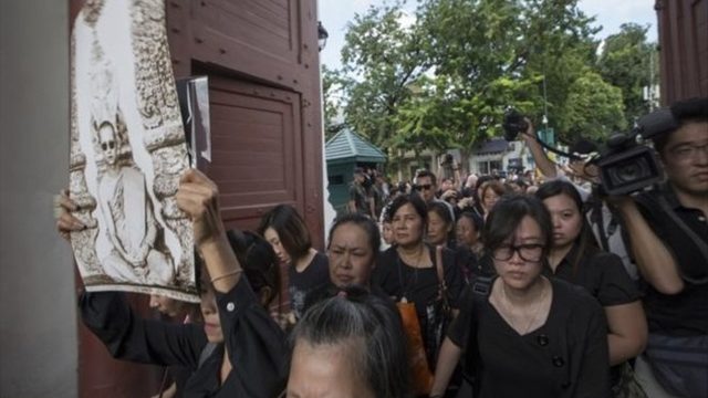 เว็บไซต์บีบีซีนิวส์ในอังกฤษรายงานว่า พสกนิกรจำนวนมากต่อแถวยาวที่พระบรมมหาราชวังเพื่อถวายสักการะและถวายความอาลัย