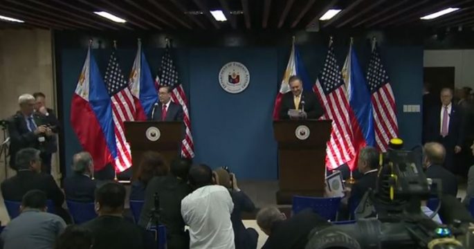 นายไมค์ พอมเพโอ รัฐมนตรีต่างประเทศสหรัฐรับปากในวันนี้พร้อมช่วยปกป้องฟิลิปปินส์หากถูกโจมตีในทะเลจีนใต้