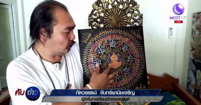 อาจารย์เขียนอักขระเลขยันต์ มหายันต์หนุนดวง ที่ใหญ่ที่สุด 1 เดียวในโลก อนุรักษ์วัฒนธรรมพื้นบ้าน ภาษาล้านนา-ขอม