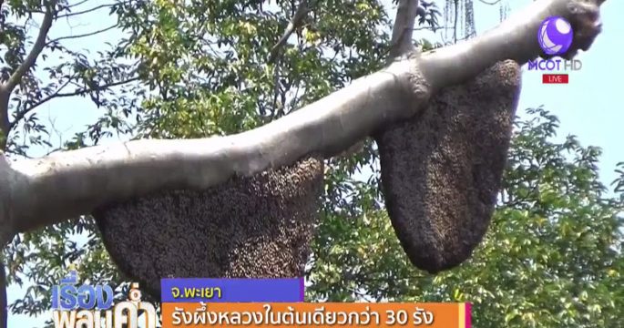 ฝูงผึ้งหลวง ที่พากันบินมาทำรังกว่า 30 รัง โดยการยึดเกาะต้นไม้ใหญ่หรือต้นสมพงศ์ (หรือต้นงุ้น) ทางภาคเหนือเรียกต้นผึ้ง ขนาดลำต้นโต 2 คนโอบ สูงประมาณ 20 เมตร