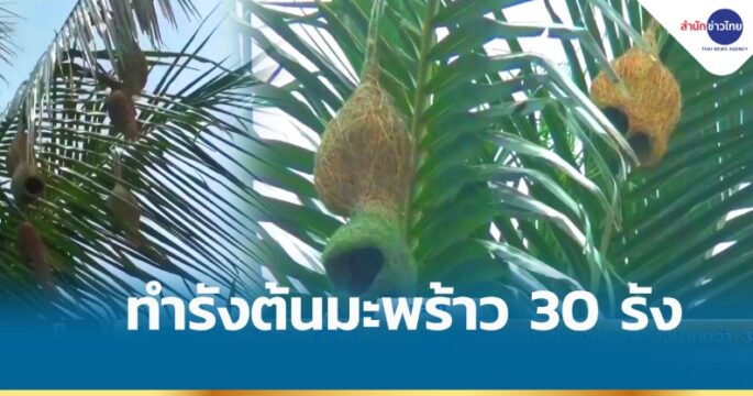 นกกระจาบทำรังต้นมะพร้าวมากกว่า 30 รัง จ.พะเยา