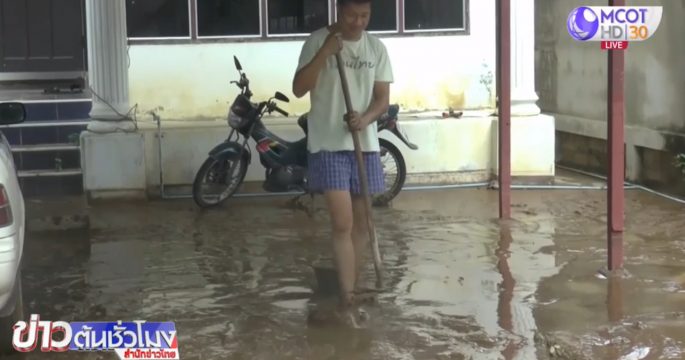 เจ้าหน้าที่ ชาวบ้าน และจิตอาสา ร่วมทำความสะอาดบ้านเรือนและหมู่บ้าน หลังเมื่อช่วงเช้าที่ผ่านมาเกิดน้ำป่าไหลหลาก ใน อ.ดอกคำใต้ จ.พะเยา