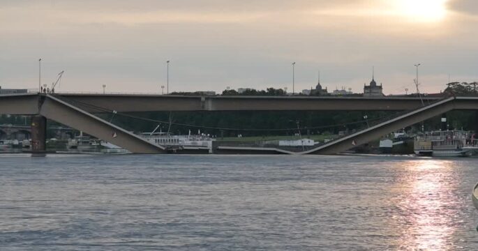 โครงสร้างส่วนใหญ่ของสะพานคาโรลา ในเมืองเดรสเดน ทางตะวันออกของเยอรมนี พังลงไปในแม่น้ำเอลเบ เมื่อช่วงเช้าตรู่ของวันพุธตามเวลาท้องถิ่น