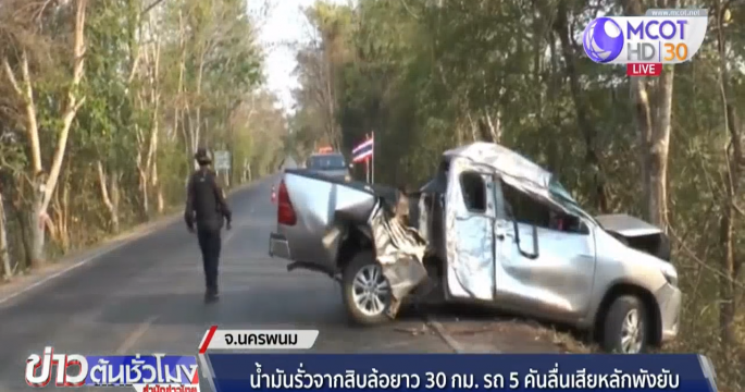 เมื่อช่วงเย็นที่ผ่านมา เกิดเหตุรถบรรทุกสิบล้อทำน้ำมันดีเซลรั่วไหล บนถนนสาย 212 นครพนม – บ้านแพง อำเภอศรีสงคราม จังหวัดนครพนม ทำให้เกิดอุบัติเหตุรถยนต์ลื่นไถลตกถนน 5 คัน