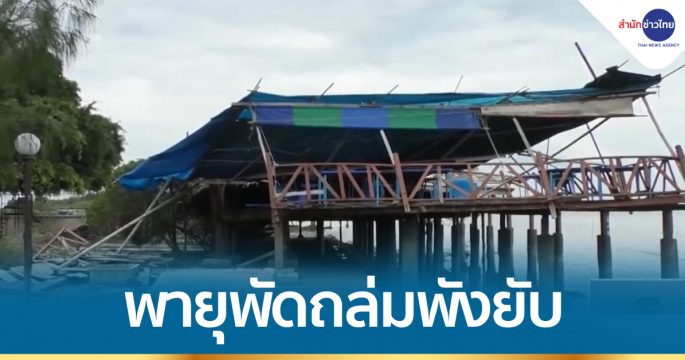 พายุพัดถล่ม จ.สมุทรสงคราม ทำให้เกิดคลื่นลมแรงซัดเข้าฝั่ง ร้านอาหารบริเวณดอนหอยหลอดเสียหายอย่างหนัก บางร้านถึงกับพังราบเป็นหน้ากลอง