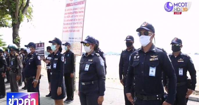 ตำรวจพัทยา ใช้โดรนขึ้นบิน ประชาสัมพันธ์แจ้งเตือนประชาชน-นักท่องเที่ยว ให้งดกิจกรรมทางน้ำบริเวณชายจอมเทียน ชายหาดหาดดงตาล ชายหาดยินยอม หวังป้องปราม ไม่ให้ฝ่าฝืน พ.ร.ก.ฉุกเฉิน