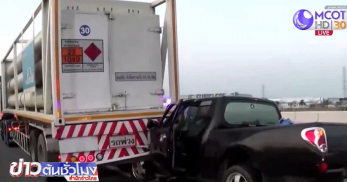 รถกระบะชนท้ายรถพ่วง 18 ล้อ บนถนนมอเตอร์เวย์ ขาเข้าพัทยา กม.61 มีผู้บาดเจ็บ 8 ราย เป็นชายชาวกัมพูชาที่นั่งมาในรถกระบะ คาดเป็นแรงงานผิดกฎหมาย