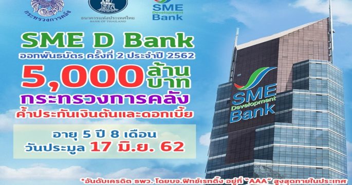 เอสเอ็มอีแบงก์ปลื้มพันธบัตรรอบแรกขายเกลี้ยง ดีเดย์ 17 มิ.ย.ออกเพิ่ม 5,000 ล้านบาท