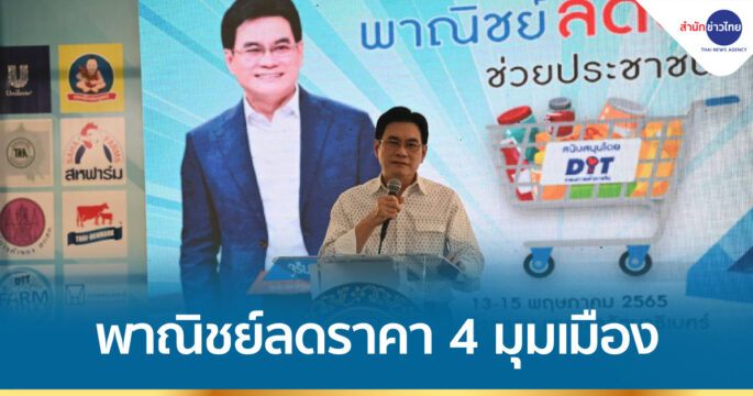 รมว.พาณิชย์ เปิดงานพาณิชย์ลดราคา 4 มุมเมือง ช่วยประชาชน ลอต 18 ทั้งกรุงเทพฯ ปริมณฑล ช่วงศุกร์-เสาร์-อาทิตย์ สินค้ารวมเกือบ 2,000 รายการ ลดสูงสุด 75% หวังช่วยลดค่าครองชีพให้กับประชาชน