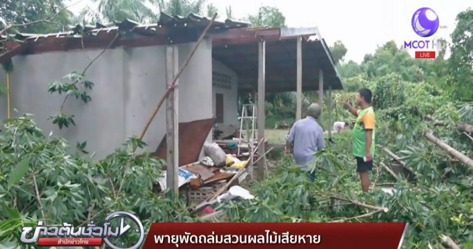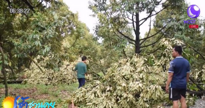 พายุพัดถล่มสวนผลไม้เมืองจันทบุรี หอบต้นทุเรียนหมอนทอง อายุกว่า 20 ปี หักโค่นถอนรากถอนโคนกว่า 100 ต้น เสียหายเป็นหลักล้านบาท