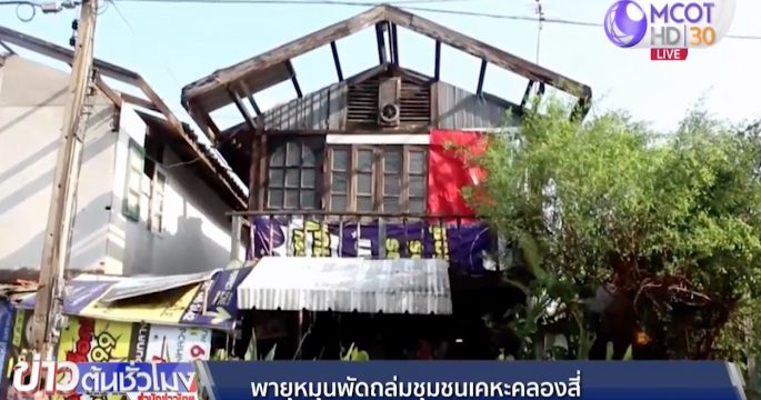 พายุหมุนพัดถล่ม ชุมชนเคหะคลองสี่ อำเภอคลองหลวง จังหวัดปทุมธานี ทำให้บ้านเรือนพังเสียหายกว่า 20 หลังคาเรือน