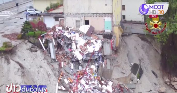 ตำรวจดับเพลิงของอิตาลี เผยแพร่ภาพจากถ่ายทางอากาศจากอากาศยานไร้คนขับ หรือโดรน แสดงให้เห็นความเสียหายจากดินถล่มเนื่องจากฝนตกหนัก และน้ำท่วมฉับพลันในแคว้นเวเนโต ทางตอนเหนือของอิตาลี