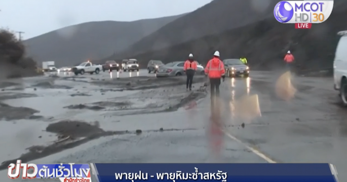 สหรัฐ 7 ธ.ค.-พายุฝนและพายุหิมะที่โหมกระหน่ำหลายพื้นที่ทางตอนใต้ของรัฐแคลิฟอร์เนียที่เพิ่งเผชิญกับความรุนแรงของไฟป่า ส่งผลให้ทางหลวงหลายสายทางตอนใต้ของรัฐแคลิฟอร์เนียเป็นอัมพาต ขณะที่หลายพื้นที่ริมเชิงเขาเสี่ยงต่อการเกิดดินถล่มเนื่องจากไฟป่าที่เผาผลาญต้นไม้บนภูเขาไปเป็นจำนวนมาก มีรายงานว่า รถยนต์อย่างน้อยหนึ่งคันติดหล่มหลังเกิดโคลนถล่มปิดกั้นทางหลวงสายหนึ่ง ขณะที่ พายุหิมะส่งผลให้รถยนต์และรถบรรทุกหลายคันแฉลบออกนอกเลน ถนนหลายสายใช้การไม่ได้เนื่องจากกองหิมะ ทางการประกาศเตือนให้ผู้ขับขี่เพิ่มความระมัดระวังอันตรายจากพายุหิมะ อย่างไรก็ตามยังไม่มีรายงานผู้บาดเจ็บ รวมทั้งรายงานความเสียหาย และยังไม่มีคำสั่งให้ชาวบ้านอพยพออกจากบ้านเรือน.-สำนักข่าวไทย