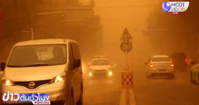 พายุทรายพัดกระหน่ำในเขตปกครองตนเองมองโกเลียในทางภาคเหนือของจีน ทำให้ทัศนวิสัยลดลงเหลือไม่ถึง 5 เมตรในบางพื้นที่