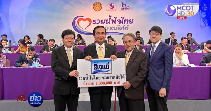 ยอดบริจาครายการรวมน้ำใจไทย ช่วยวาตภัยใต้ ช่วยผู้ประสบภัยพายุปาบึก ล่าสุดพุ่ง 132 ล้านบาท นายกฯ ร่วมมอบเงิน 1 เเสนบาท พร้อมนั่งรับสายบริจาคด้วยตนเอง ขอบคุณประชาชนที่ร่วมส่งน้ำใจ