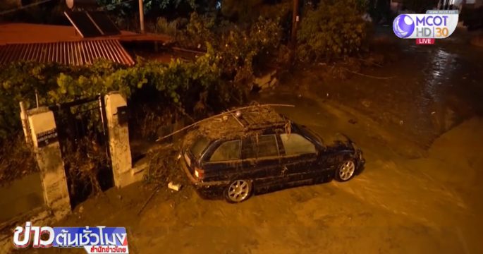อุดรธานี 23 มิ.ย.- พายุถล่มเมืองอุดรฯ กลางดึก ลมแรงพัดต้นยางยักษ์อายุกว่า 100 ปี ทับรถยนต์พังยับ หลายพื้นที่ไฟฟ้าดับเพราะต้นไม้ล้มทับเสาไฟ เมื่อช่วงกลางดึกที่ผ่านมา เกิดพายุฝนถล่มอย่างหนักในหลายพื้นที่ จ.อุดรธานี โดยเฉพาะ อำเภอบ้านดุง อำเภอเพ็ญ อำเภอหนองหาน อำเภอพิบูลย์รักษ์ และอำเภอกู่แก้ว เกิดพายุฝนถล่มอย่างหนัก ลมกระโชกแรง พัดต้นไม้ใหญ่ล้มทับปิดเส้นทางเดินรถ โดยเฉพาะ อ.บ้านดุง ใน ต.บ้านดุง ต.วังทอง ต.บ้านจันทน์ ตั้งแต่แยกบ้านเหล่าอุดมไปถึงบ้านบ่อศิลา ต.บ้านจันทน์ เกิดต้นไม้ใหญ่ล้มทับปิดเส้นทางขวางถนน เจ้าหน้าที่กู้ภัยต้องรีบนำทีมตัดต้นไม้ เพื่อเปิดเส้นทางให้รถสัญจรได้สะดวก ส่วนที่ อ.กู่แก้ว ต้นยางยักษ์อายุกว่า 100 ปี ที่อยู่หน้าวัดป่าศรีคุณาราม ถูกแรงพายุพัดโค่นลงมาทับรถยนต์ของชาวบ้าน 1 คันได้รับความเสียหาย นอกจากนี้ ยังมีต้นไม้ใหญ่ล้มขวางถนนระหว่าง อ.บ้านดุง และ อ.เพ็ญ อีกหลายจุด ขณะเดียวกันลมแรงพัดต้นไม้ล้มทับเสาไฟฟ้า ทำให้หลายพื้นที่ไฟดับทั้งอำเภอ หน่วยกู้ภัยต้องนำรถ 6 ล้อและเลื่อยยนต์ตัดต้นไม้ใหญ่เพื่ออำนวยความสะดวกตลอดทั้งคืน .-สำนักข่าวไทย