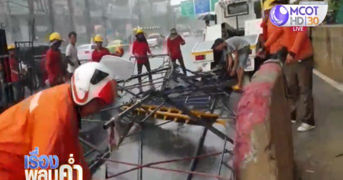 พายุฝนลมแรง ทำให้นั่งร้านตอม่อ Skywalk สถานีหลักสี่ พังลงมา กีดขวางผิวจราจร บริเวณถนนวิภาวดีรังสิต ล่าสุดเจ้าหน้าที่เคลียร์ทางแล้ว
