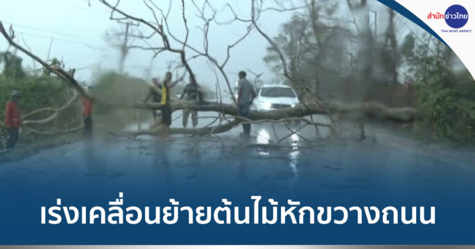 พายุฤดูร้อนถล่ม ต้นไม้หักทับรถขวางถนน เจ้าหน้าที่เร่งเคลื่อนย้ายก่อน นายกฯ และคณะ ลงพื้นที่นครพนม
