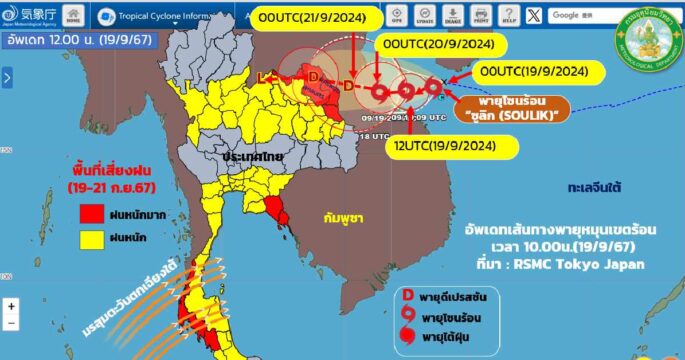 พายุโซนร้อน “ซูลิก” ทำฝนตกหนัก 76 จังหวัด 19-23 ก.ย.