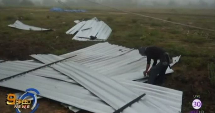 หลายจังหวัดฝนตกหนักทำให้น้ำป่าไหลหลากและเสาไฟฟ้าหักโค่นเป็นจำนวนมาก โดยเมื่อวานที่ อ.ตาคลี จ.นครสวรรค์ เกิดพายุหมุนอย่างรุนแรงทำให้เสาไฟฟ้าล้มระเนระนาดเกือบ 90 ต้น เจ้าหน้าที่เร่งเข้าสำรวจและซ่อมแซมความเสียหาย
