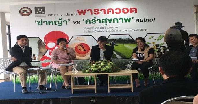 ในเวทีเสวนาเผยข้อมูลพิษของยาฆ่าหญ้าพาราควอต ผลวิจัยพบเสี่ยงเป็นโรคผิวหนัง พาร์กินสัน ระบบประสาทเชื่อมโยงสตรีมีครรภ์และทารกแรกเกิด เร่งรัฐบาลฟันธงยกเลิกการนำเข้า