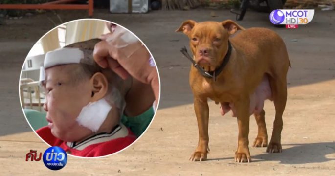 เด็กชาย 2 ขวบ ชาวหนองคาย เล่นรถของเล่นอยู่หน้าบ้าน เจอสุนัขพิตบูลของเพื่อนบ้านวิ่งขย้ำกัดจมเขี้ยว กะโหลกเปิด ลากเข้าป่ากล้วยกัดต่อ แม่เข้าช่วย ถูกกัดด้วย