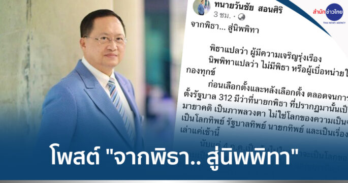 “ส.ว.วันชัย” โพสต์ “จากพิธา.. สู่นิพพิทา” ชี้ 4 ก.ค.เป็นต้นไป คือ โลกจริง 312 เสียง แค่ภาพลวงตา