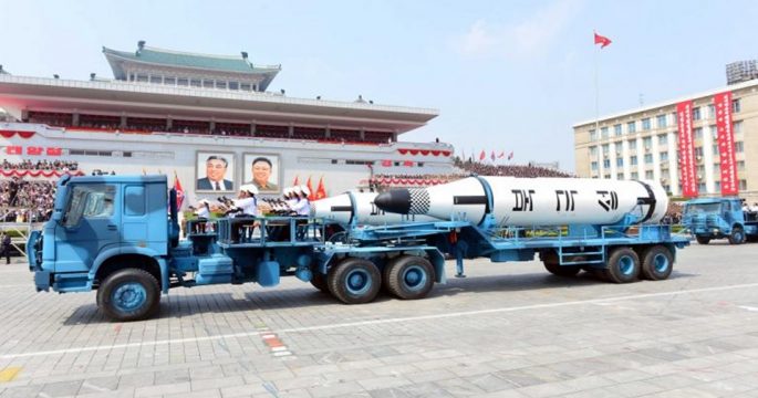 รูปภาพจากพิธีสวนสนามของกองทัพเกาหลีเหนือเนื่องในโอกาสครบรอบวันเกิด 105 ปีของผู้ก่อตั้งประเทศเผยให้เห็นถึงการใช้รถบรรทุกผลิตจากจีนในการเคลื่อนขบวนขีปนาวุธ