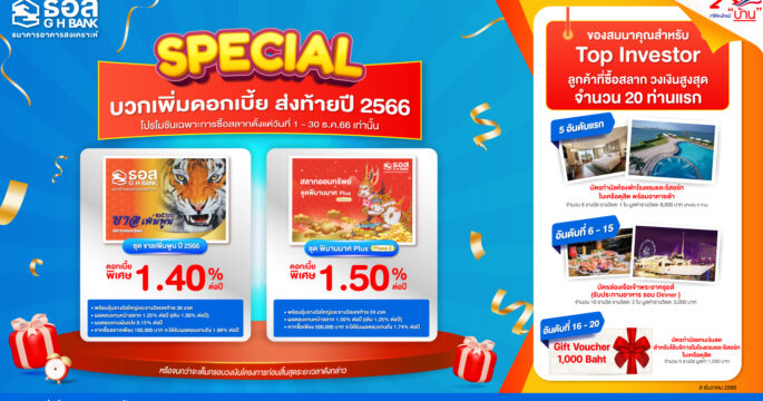 ธอส.จัดโปรโมชันบวกเพิ่มดอกเบี้ยส่งท้ายปี 66