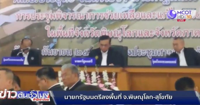นายกรัฐมนตรีลงพื้นที่ติดตามสถานการณ์น้ำท่วม และเยี่ยมให้กำลังใจผู้ประสบอุทกภัยที่ จ.พิษณุโลก และสุโขทัย กำชับให้ผู้ว่าราชการจังหวัด 17 จังหวัดภาคเหนือ เร่งฟื้นฟูพื้นที่ประสบอุทกภัย และเตรียมพร้อมรับมือพายุลูกใหม่